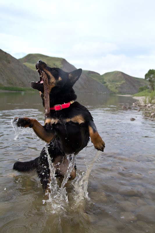 The park had a river as well as lots of grassy areas to play. Coulee thought it was perfect for her fetching needs.
