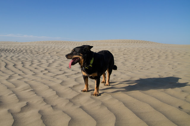 Most of the sand is covered with vegetation but there were areas of open dunes. The road leading up to the area was just sand too. They were like giant beaches on hills with no water in sight. We couldn't resist letting the dogs off leash and they had a blast running around.